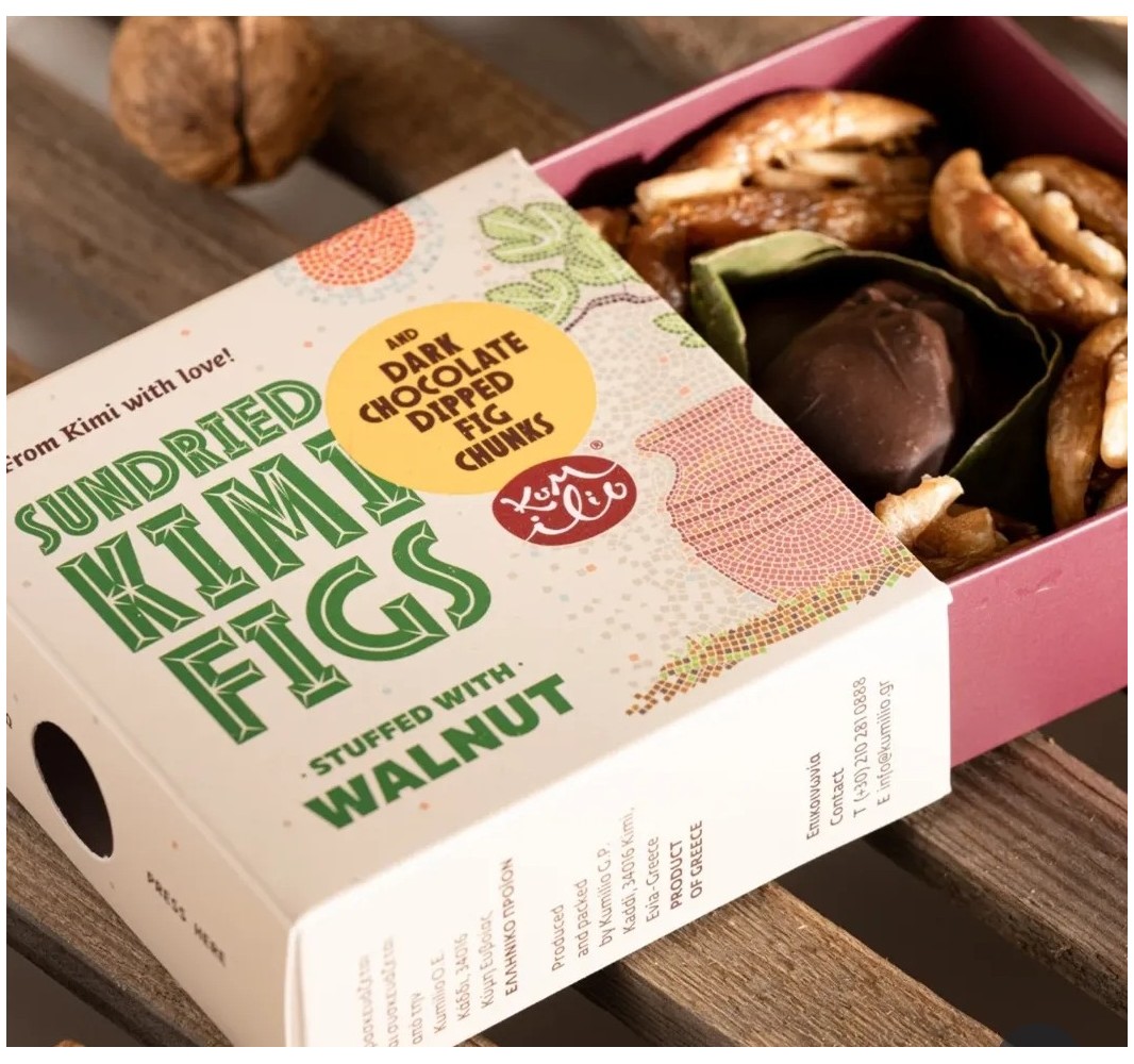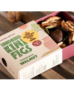 Wyjątkowy zestaw fig Kimi P.D.O. w czekoladzie i z orzechami włoskimi – zdrowa i elegancka przekąska.