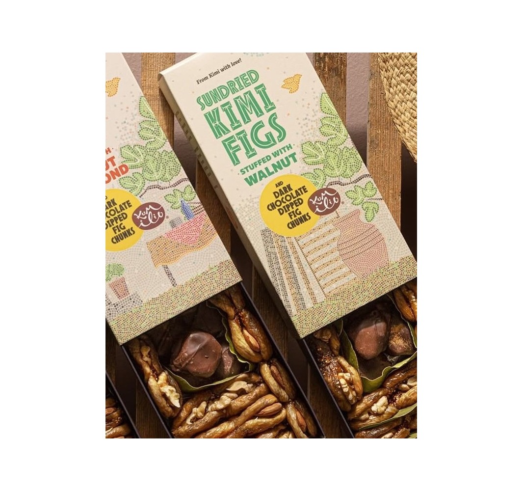 Zestaw fig Kimi P.D.O. w gorzkiej czekoladzie oraz fig nadziewanych orzechami włoskimi – wykwintna, naturalna słodycz idealna na prezent.