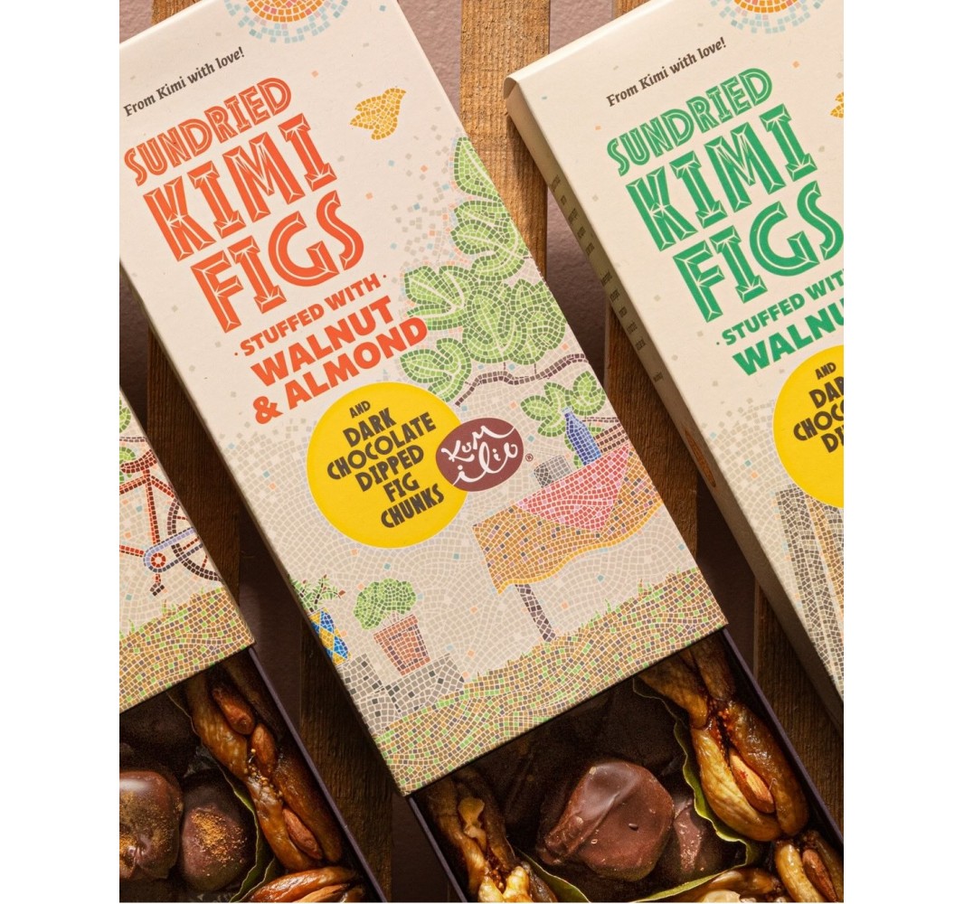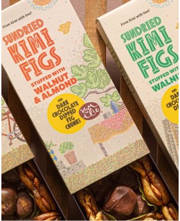 Zestaw fig Kimi P.D.O. w gorzkiej czekoladzie oraz fig nadziewanych orzechami włoskimi i fig nadziewanych migdałami – wykwintna, naturalna słodycz idealna na prezent.