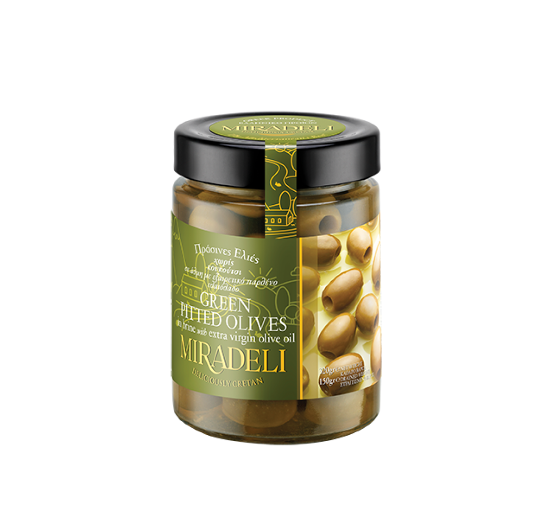 Naturalne zielone oliwki z Krety, już bez pestek i gotowe do jedzenia. Mają delikatny smak i jędrny miąższ, bez konserwantów i sztucznych dodatków. Idealne do sałatek, pieczywa czy jako przekąska.