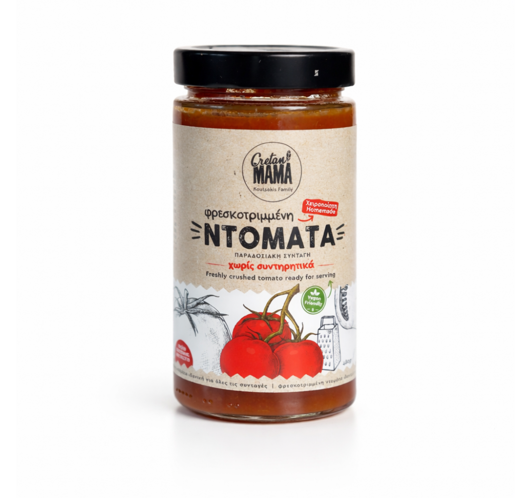Cretan Mama to niewielka, rodzinna firma z Krety, która od pokoleń zajmuje się uprawą pomidorów i produkcją tradycyjnych sosów pomidorowych. Rodzina producentów pielęgnuje lokalne tradycje kulinarne i wykorzystuje własne uprawy, aby tworzyć produkty oddające prawdziwy charakter kuchni kreteńskiej.