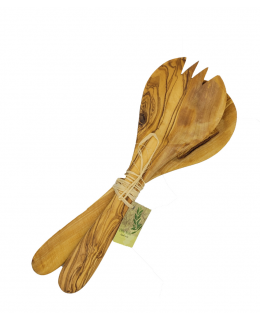 - Zestaw łyżek do sałatki 26cm z drewna oliwnego - hand made z pięknymi wzorami słojów.